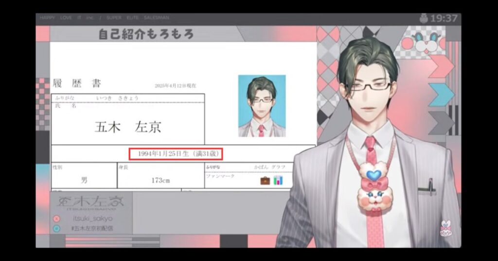 しかし、五木左京さん自体が1994年1月25日の31歳と公開しているため、中の人も同じ年齢ではないか?とされています。