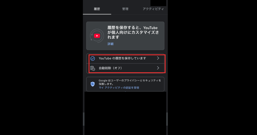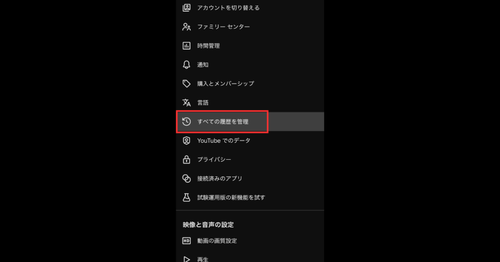 自分のアカウントの再生履歴に関する設定は、マイページの設定>すべての履歴を管理から確認可能です。